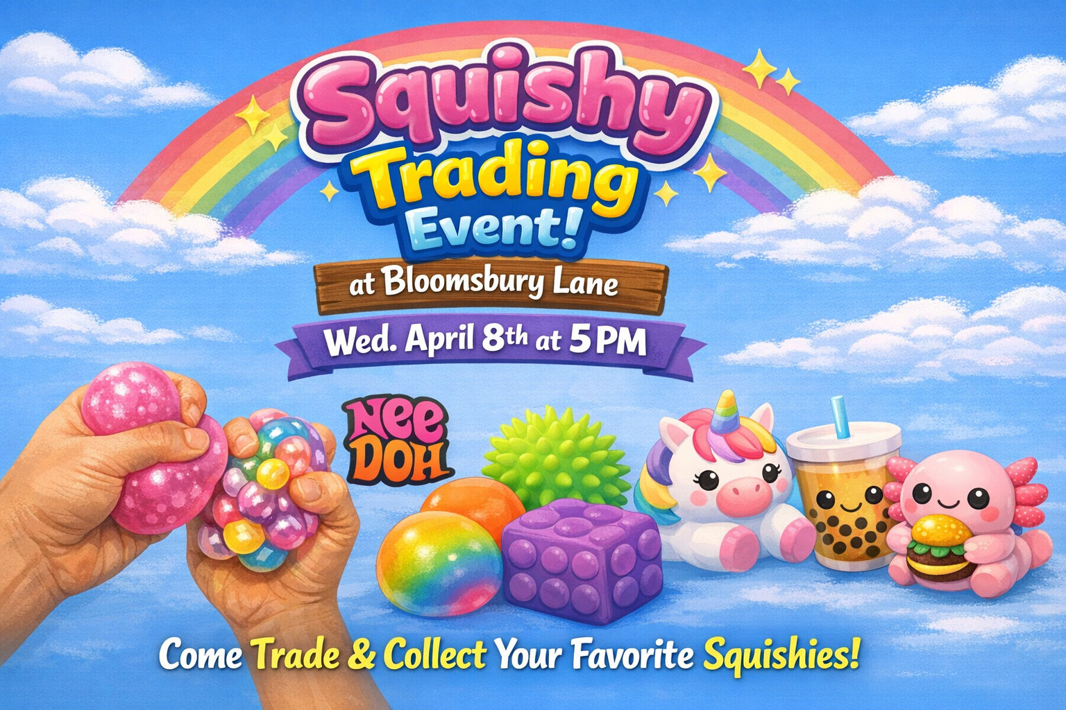 🎉 Love squishies and all things fidgety? Bring your friends and your collection to Bloomsbury Lane Toy Shoppe on Wed, April 8th from 5–6 PM!